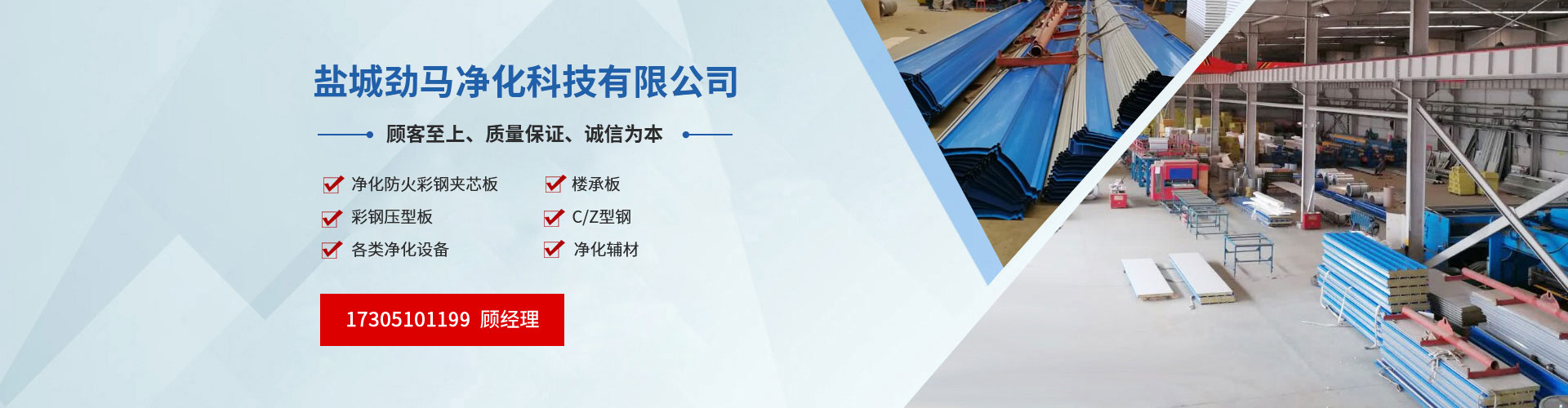 鹽城勁馬凈化科技有限公司是一家專(zhuān)業(yè)生產(chǎn)凈化防火彩鋼夾芯板、彩鋼壓型板、C/Z型鋼,樓承板的廠家,并銷(xiāo)售各類(lèi)凈化設(shè)備,凈化輔材的多元化企業(yè)。